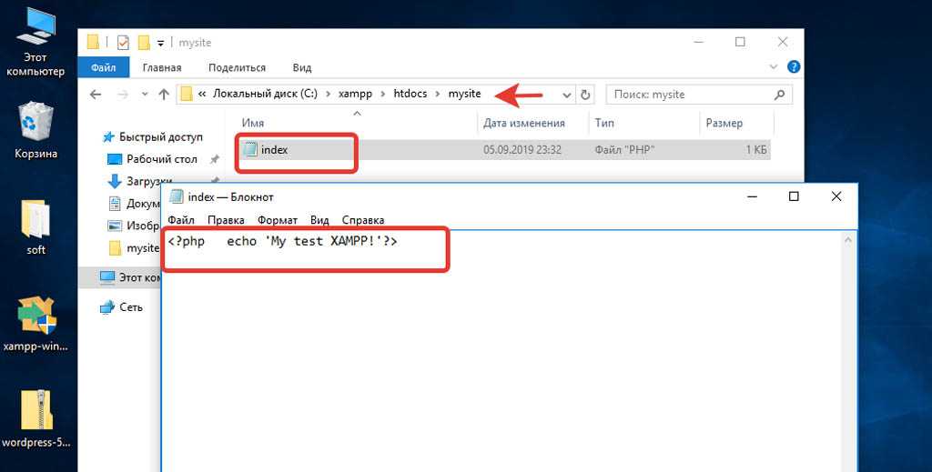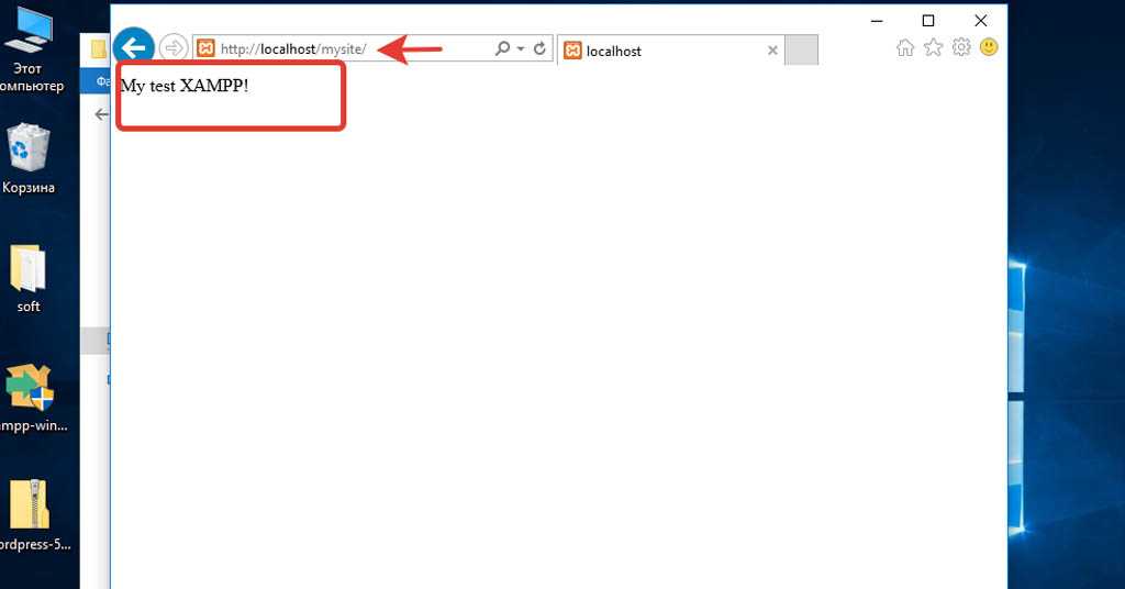 Попробуйте зайти на http: //localhost/ mysite в вашем браузере. Если он отображает слова « ‘My test XAMPP!», тогда XAMPP успешно установлен и настроен в вашей системе.