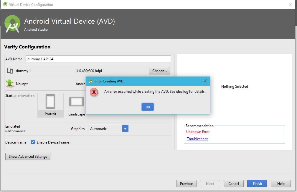 Выберите системный образ для эмулятора на вкладке Recommended. Наилучшую производительность дают образы х86, но они не поддерживаются процессорами AMD в системе Windows. В Linux такой проблемы нет.
