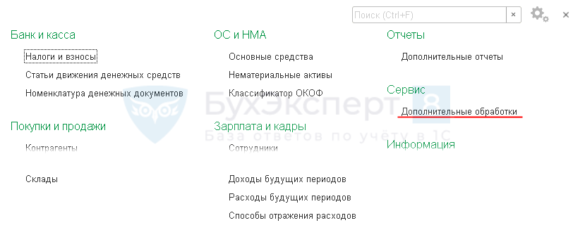 Перейдите в раздел, который указали в настройке и откройте ссылку Дополнительные обработки.