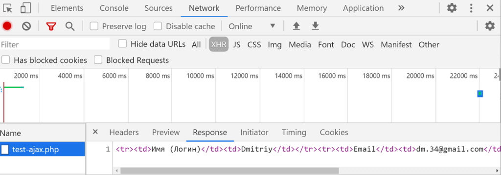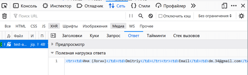 - В ответ на запрос AJAX сервер может вернуть данные строки XML, JSON или HTML.