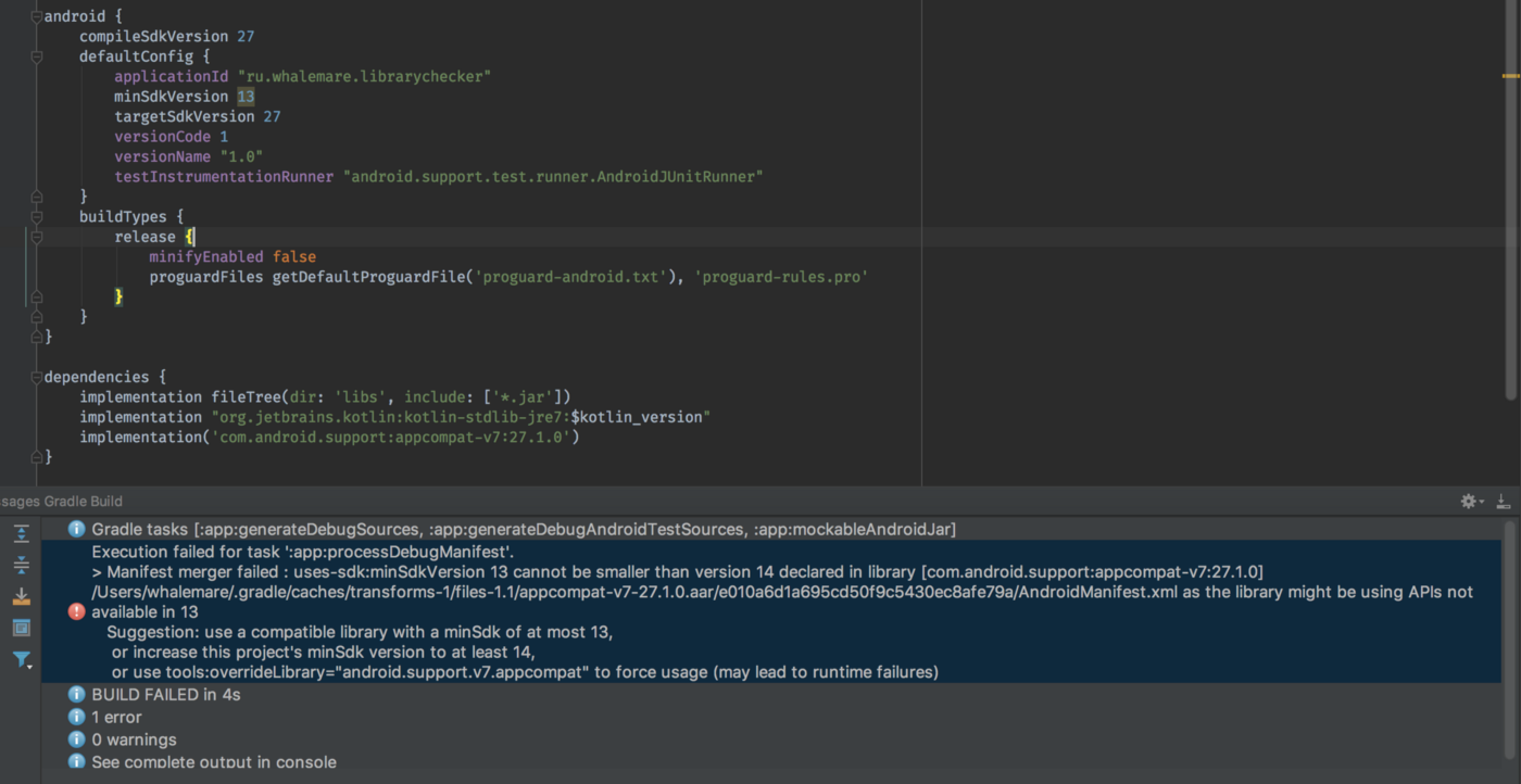 С одной этой подключенной библиотекой , проект уже использует примерно 30% от всего доступного места (если считать по количеству методов). Ради справедливости стоит отметить, что здесь подключен и Котлин являющийся де-юро (но пока далеко не де-факто) стандартом разработки под Андроид.
