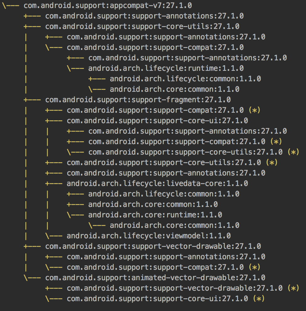 // v4 compat libraryimplementation 'com.android.support:appcompat:27.1.0'// v7 compat libraryimplementation 'com.android.support:appcompat-v7:27.1.0'