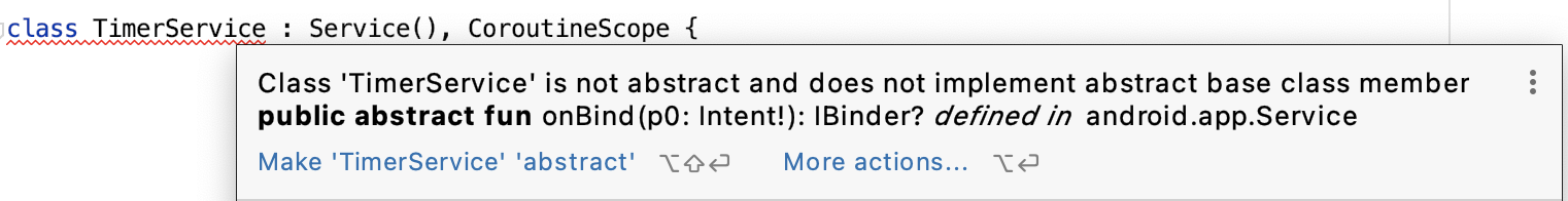 Присмотритесь и обратите внимание, что Android Studio выдает ошибку из-за того, что не может найти onBind()
