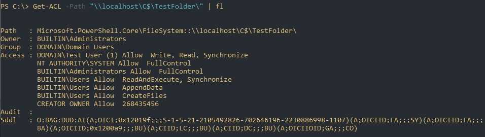 Представим, что мы хотим проверить права данные определенной группе. Мы можем заходить в свойства каждой папки и смотреть вкладку «Безопасности», а можем сделать это через Powershell.