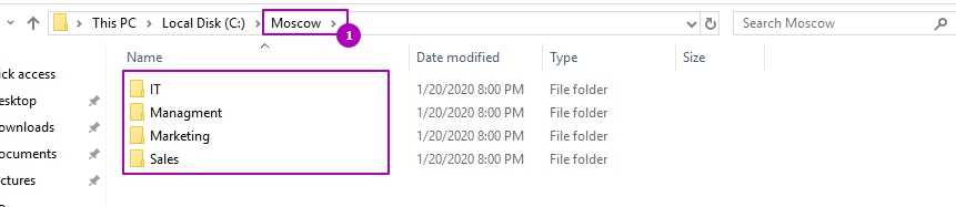 Обычно у нас есть какой-то каталог с общим доступом с папками внутри, на которые мы выдаем разрешения. В моем случае такой каталог «Moscow», а на папки внутри я уже даю права: