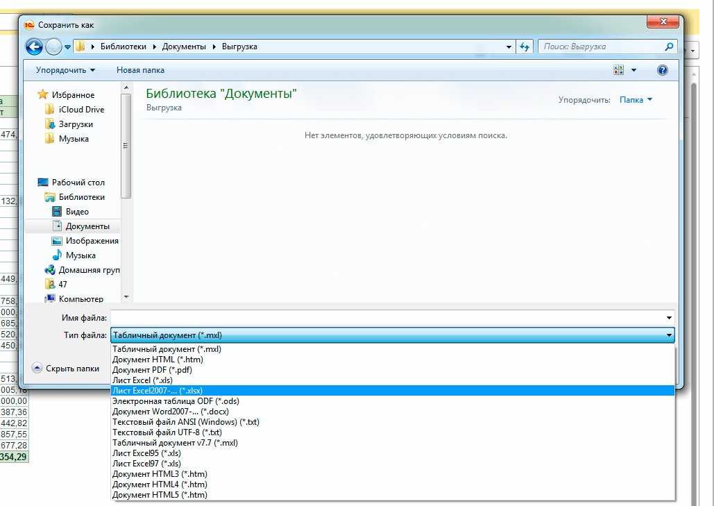 Это стандартное окно для сохранения документов. Здесь необходимо будет задать название файла, выбрать его формат (docx, mxl, xlsx, pdf, txt и пр.) и путь, куда необходимо сохранить готовый документ.
