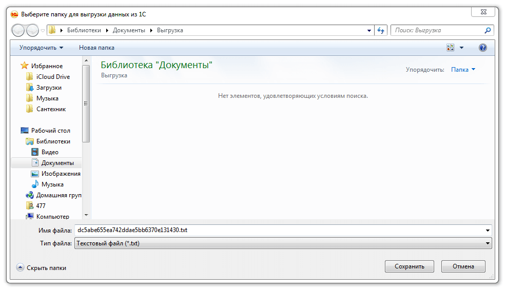 Для выгрузки данных нажать Выгрузить. В результате выгрузки будет создан файл