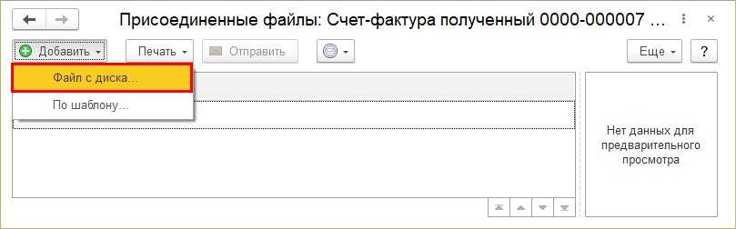Если нажать её, можно будет загрузить документ в базу с диска.