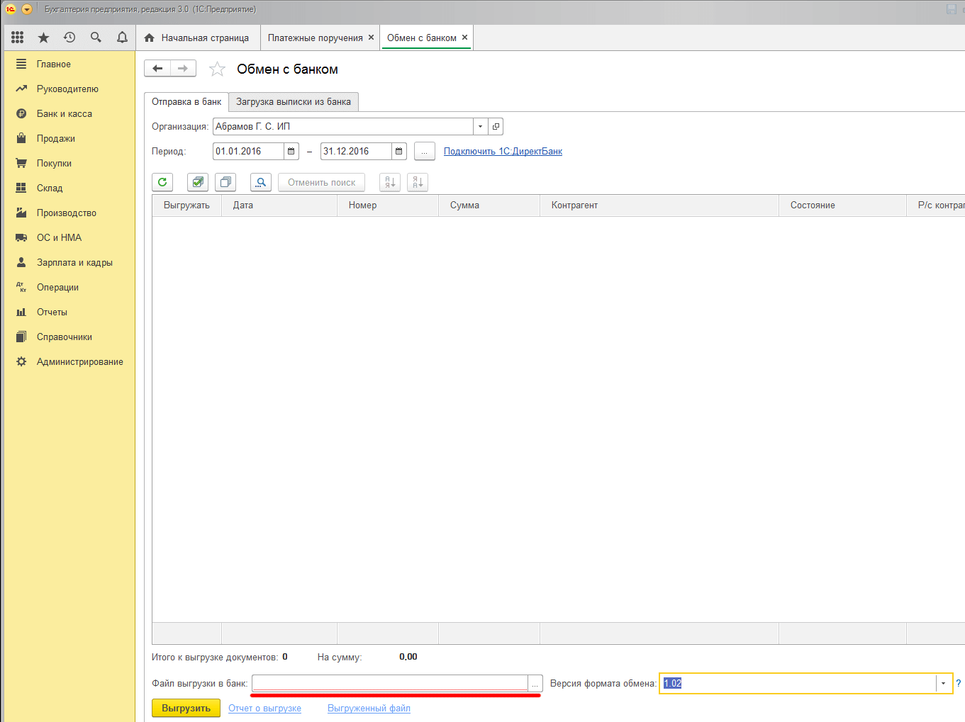 Найти и открыть документ, который нужно выгрузить. Это могут быть и оборотно-сальдовые ведомости, и банковские поручения, различные отчеты по складу, документы поступления и прочее.