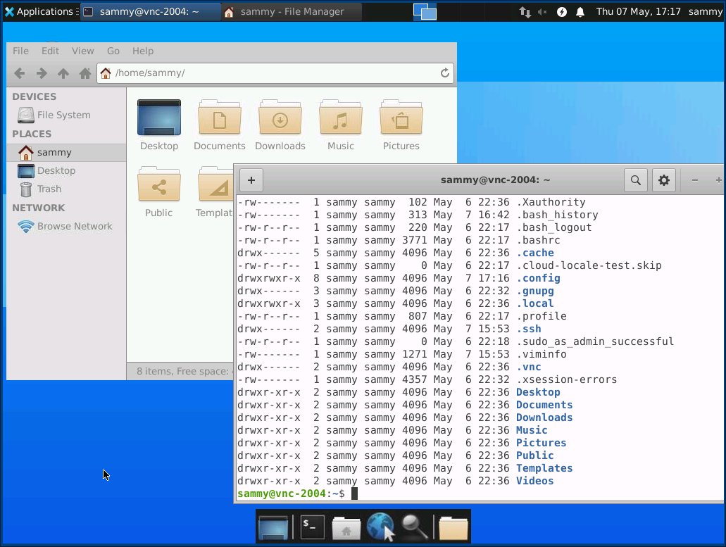 Команды, запускаемые сервером VNC при старте, находятся в файле конфигурации с именем в папке вашего домашнего каталога. Скрипт запуска был создан при запуске команды на предыдущем шаге, однако мы создадим собственный сценарий для запуска рабочего стола Xfce.