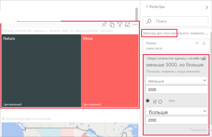 Опубликуйте отчет в службе Power BI, а затем используйте строку запроса в URL-адресе для фильтрации и отображения данных, связанных только с магазинами Lindseys в Северной Каролине.