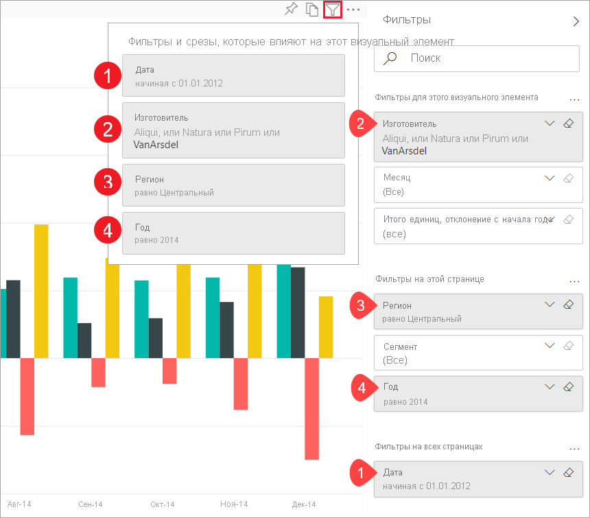- Примените один или несколько фильтров, используя раскрывающиеся меню фильтров.