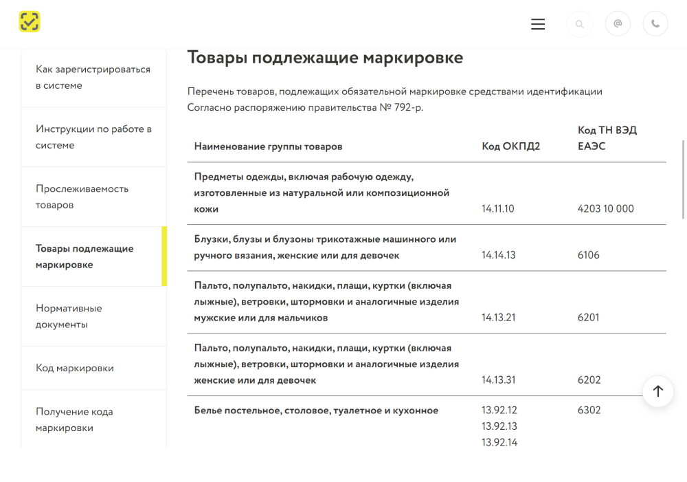 Точный перечень товаров для маркировки на сайте системы «Честный знак»