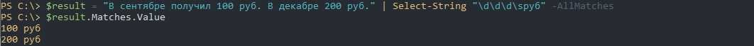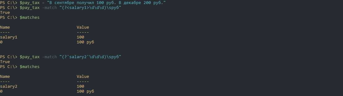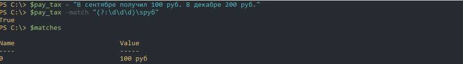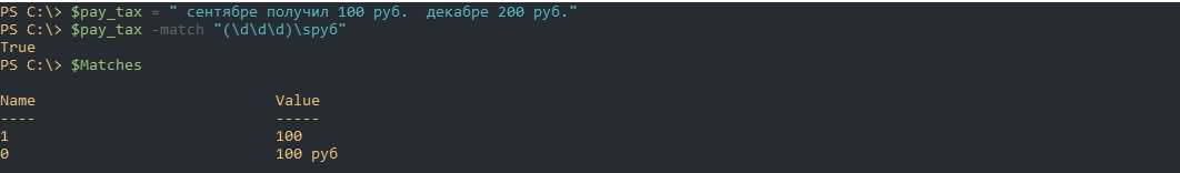 При использовании групп у нас появляется специальная переменная $Matches, которая хранит найденные по шаблонам результаты: