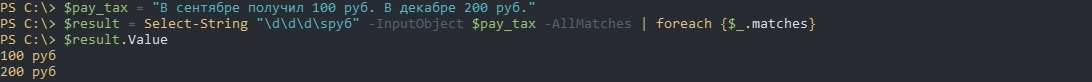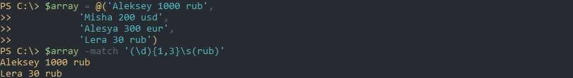 При определении регулярного выражения, содержащего привязку $, обязательно заключите регулярное выражение в одинарные кавычки (‘) вместо двойных кавычек («), иначе PowerShell будет трактовать выражение как переменную.