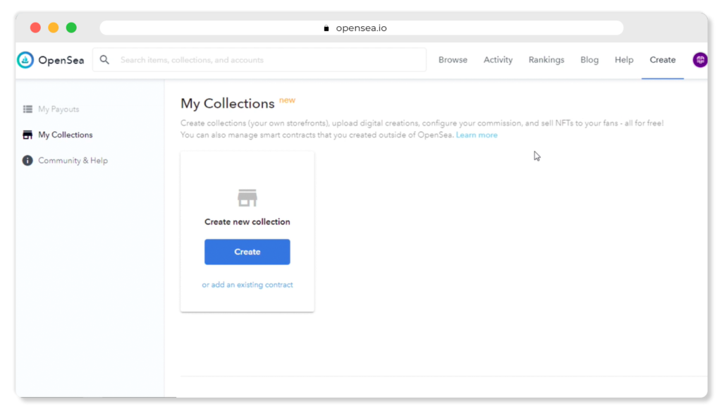 Страница «My Collection» пока пуста, потому что ни создано ни одной коллекции