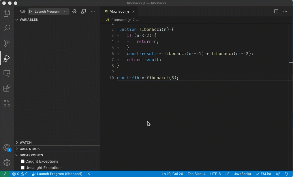 In order to start a debug session, first select the configuration named Launch Program using the Configuration dropdown in the Run view. Once you have your launch configuration set, start your debug session with F5.