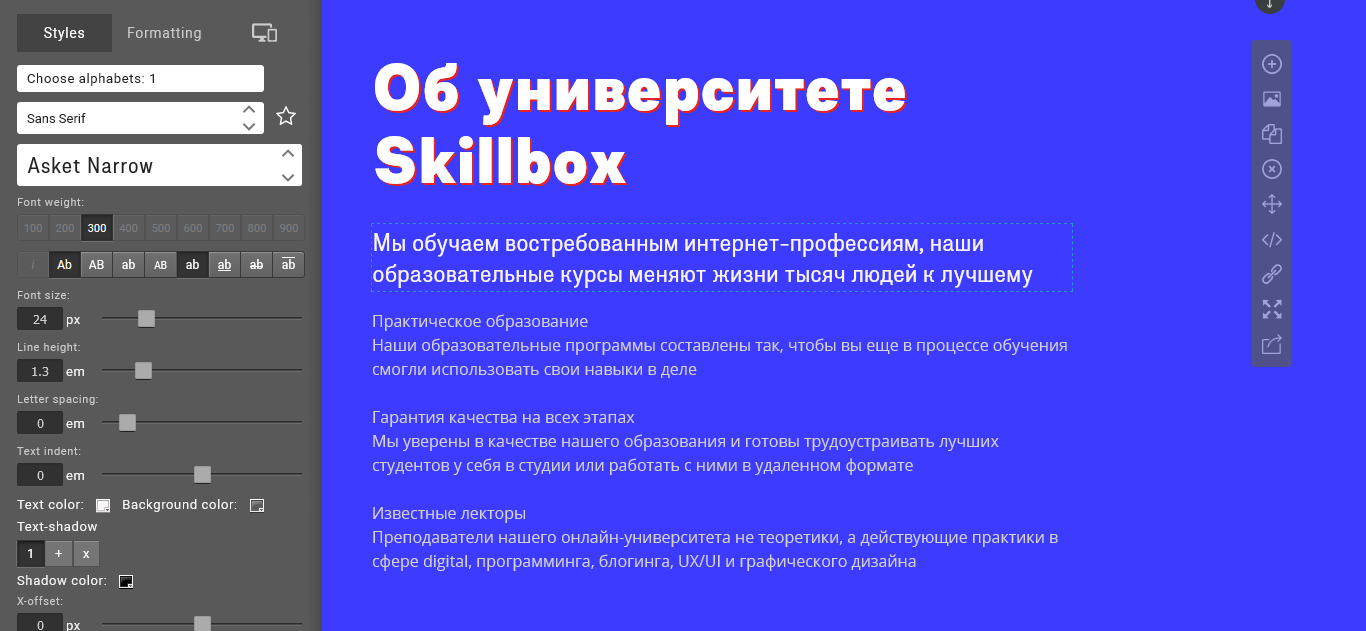 Так выглядит инструмент Font Playground: на настройку стилей ушло три минуты.