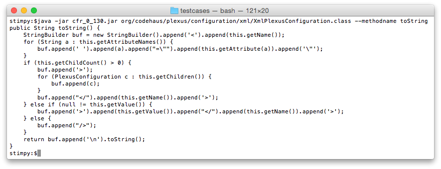 CFR — еще один декомпилятор java — отличный декомпилятор для современной Java, написанный на i Java 6.