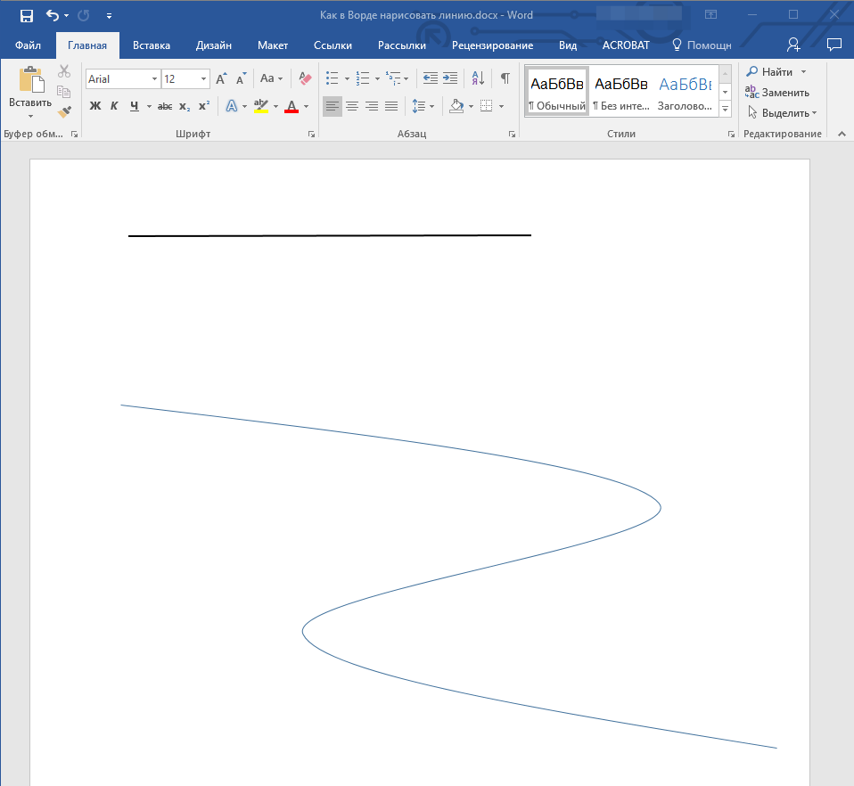 Чтобы нарисовать не прямую, а кривую линию, выберите соответствующий тип линии в разделе “Фигуры”. Кликните один раз левой кнопкой мышки и потяните ее, чтобы задать один изгиб, кликните второй раз для следующего, повторите это действие для каждого из изгибов, а затем дважды кликните левой кнопкой мышки, чтобы выйти из режима рисования линии.