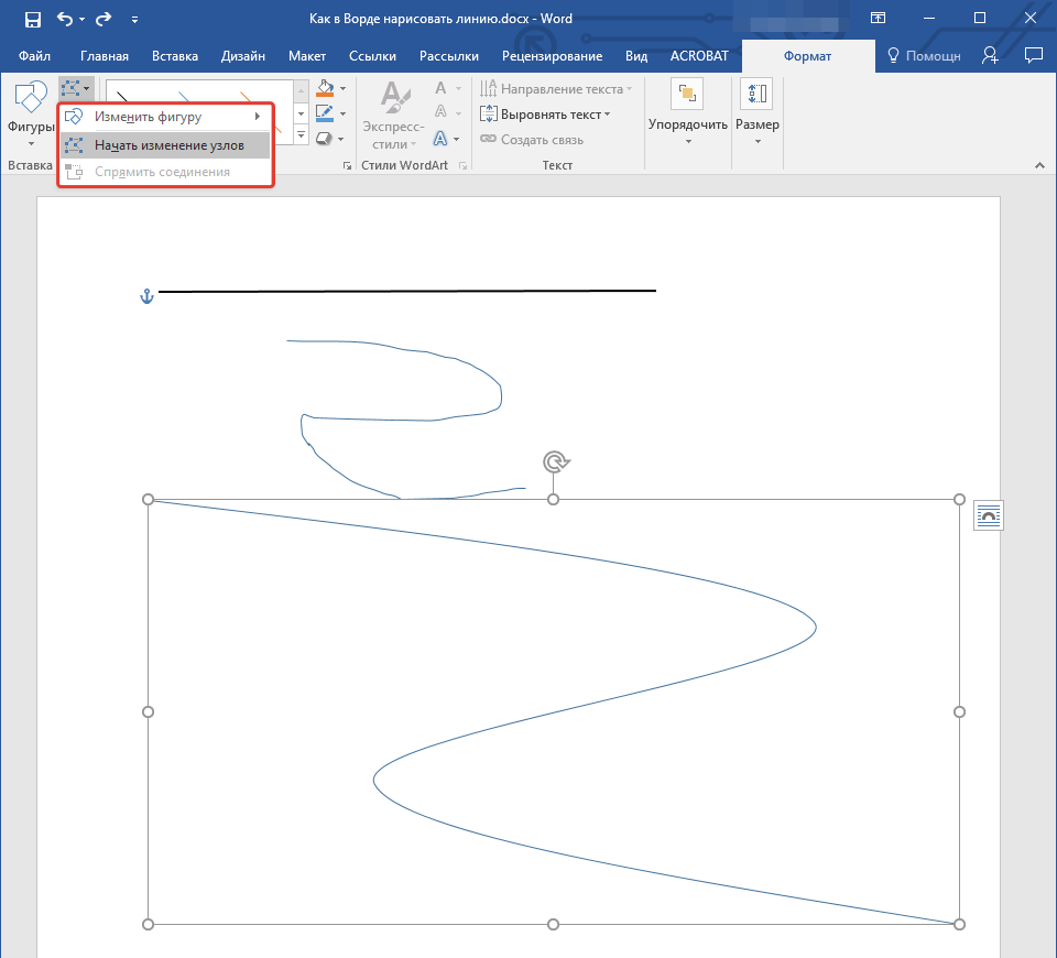 Для фигур с узлами (например, кривая линия) доступен инструмент их изменения.