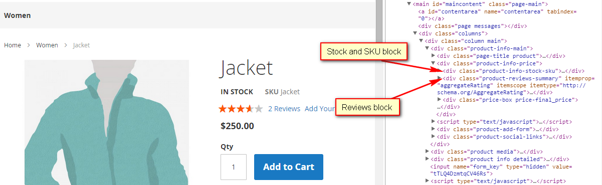 Place the stock availability and SKU blocks after product price block on a product page, and move the review block out of the product-info-price container.
