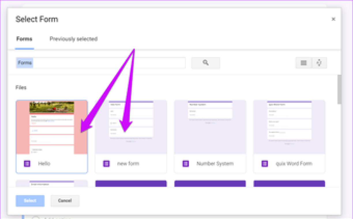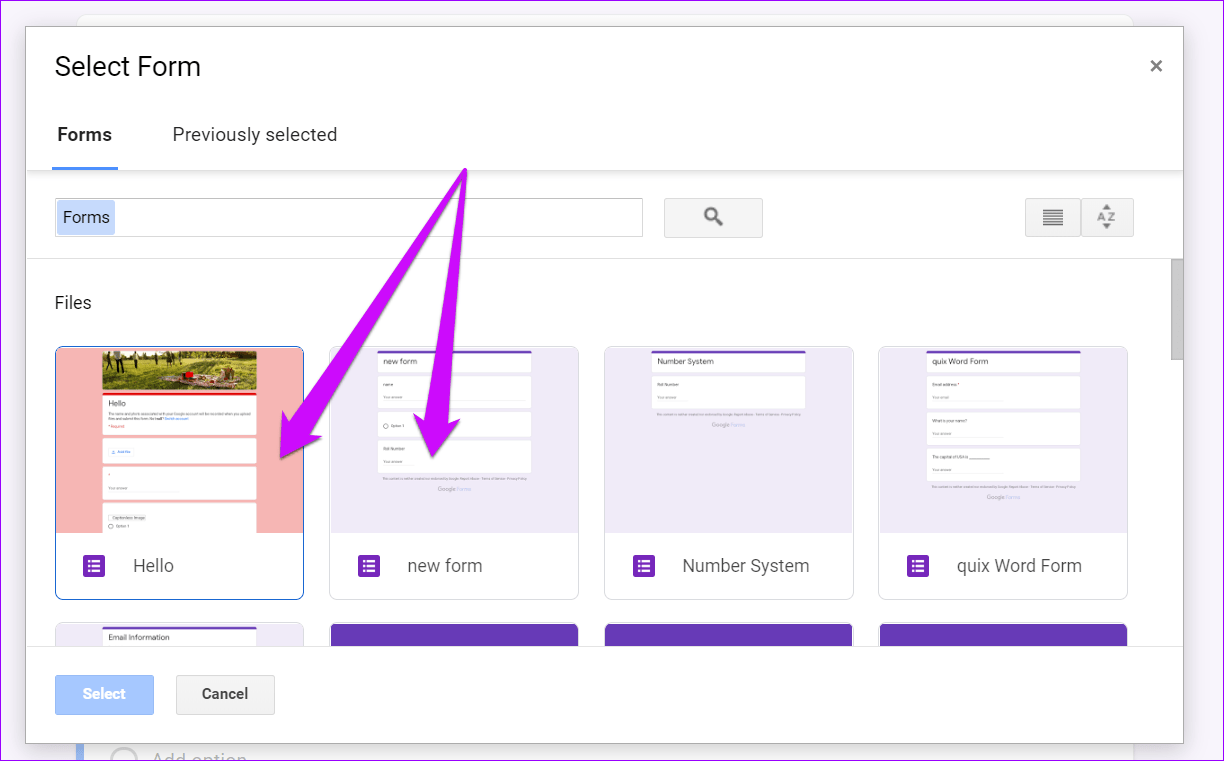 Google Forms запоминает предыдущие выбранные формы, и это умно. Итак, если вам случится выбрать один из них, вы можете найти его прямо на вкладке «Выбранные ранее».