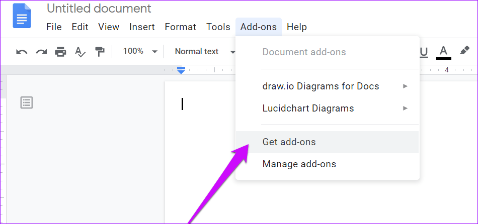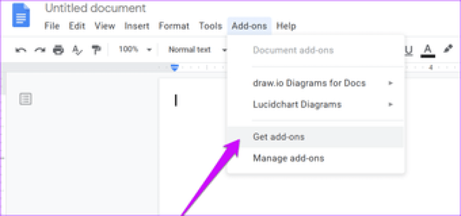 Шаг 1: Для этого откройте новый документ и перейдите к кнопке надстройки> Получить надстройки.