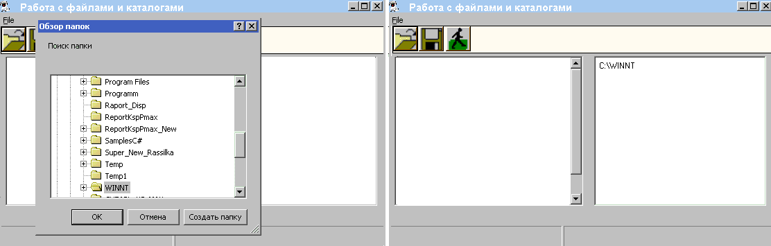 This class provides a way to prompt the user to browse, create, and eventually select a folder. Use this class when you only want to allow the user to select folders, not files. Browsing of the folders is done through a tree control. Only folders from the file system can be selected; virtual folders cannot.