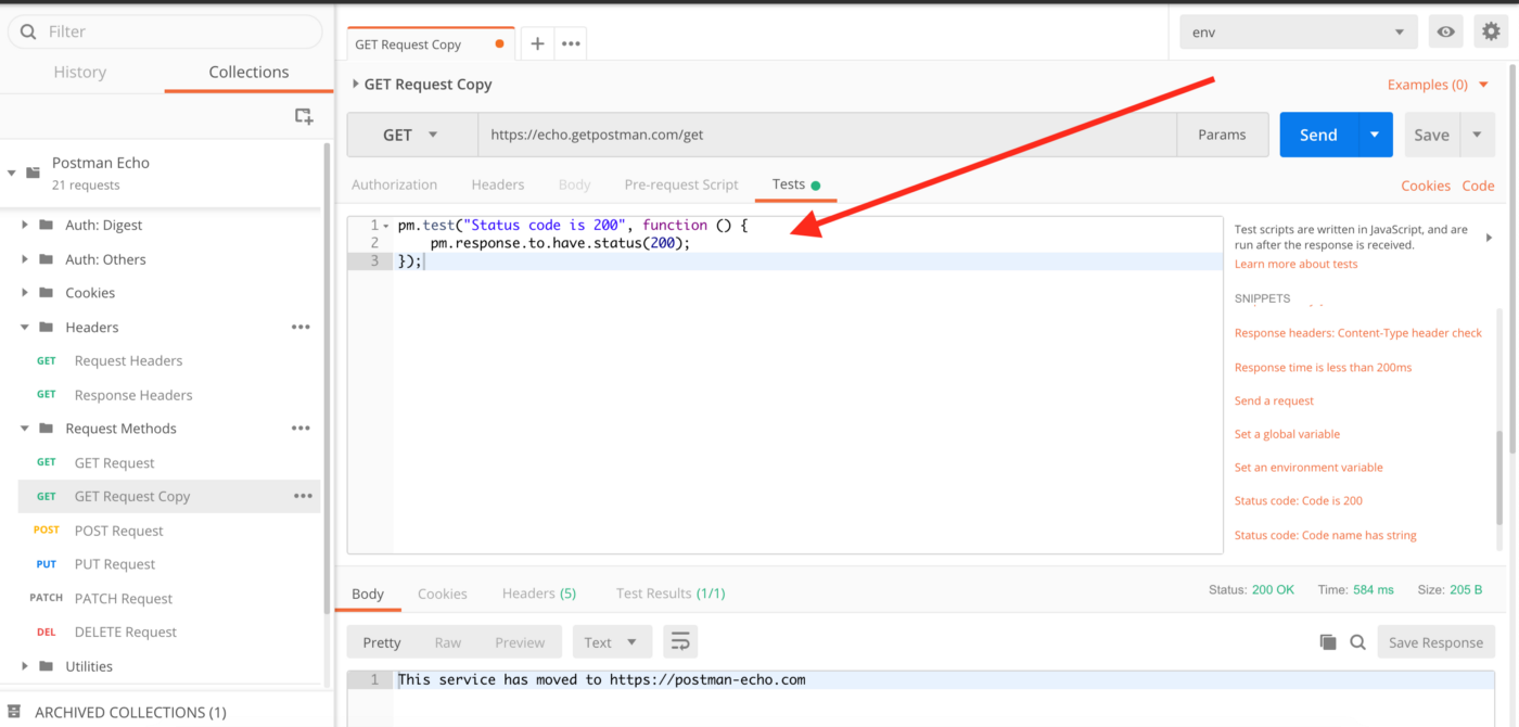 Например, наш base URL — https://testengineer.ru и мы сохраняем это значение в переменной с именем base_url. В этом случае, мы можем обратиться к этой переменной из запроса, написав `base_url`. Для того, чтобы отправить запрос на этот URL, мы подставим эту переменную в запрос. Выглядеть это будет так: `base_url`/get?customers=new. Запрос будет отправлен на https://testengineer.ru/get?customers=new