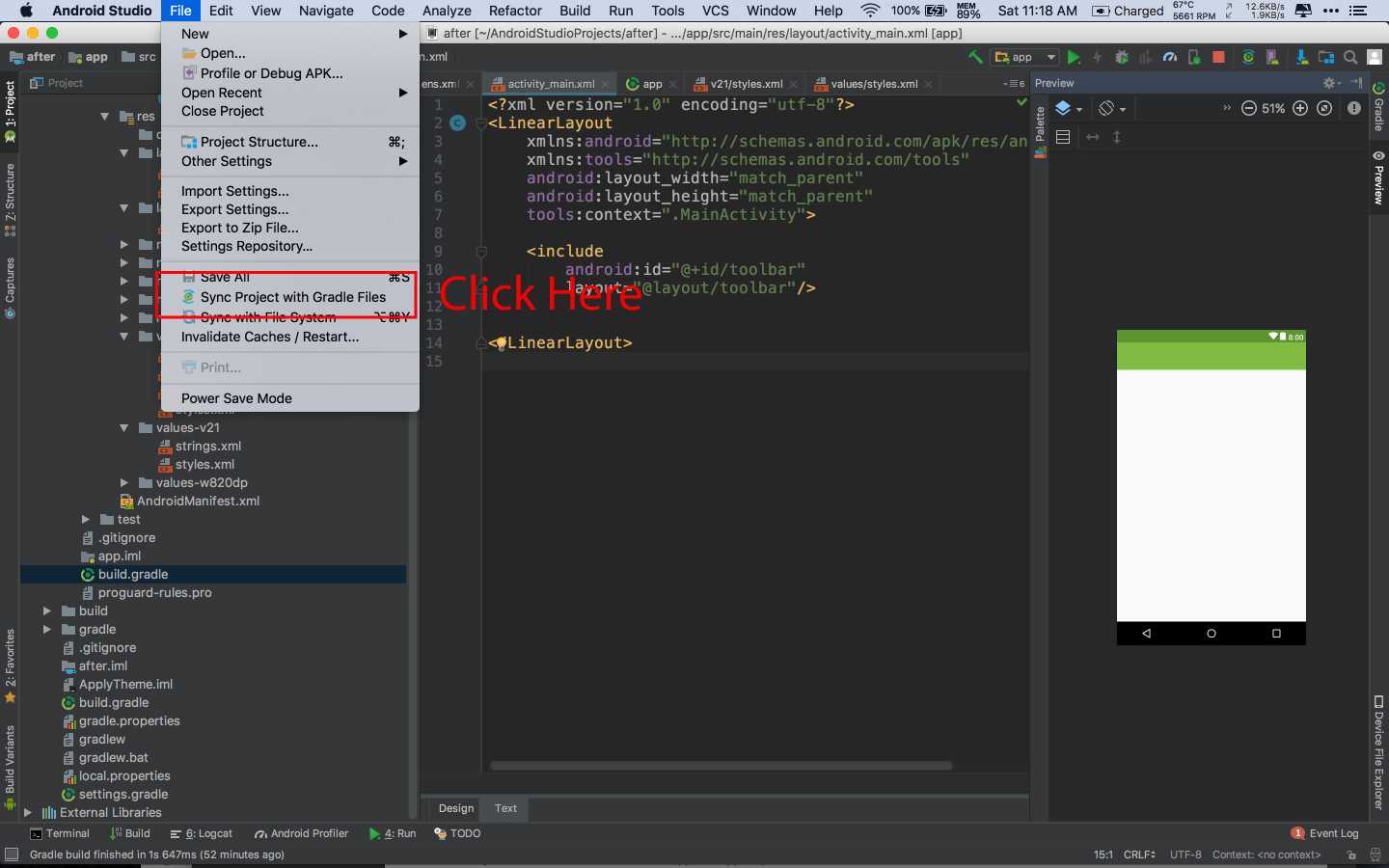 Перейдите в Файл> Синхронизировать проект с файлами Gradles.