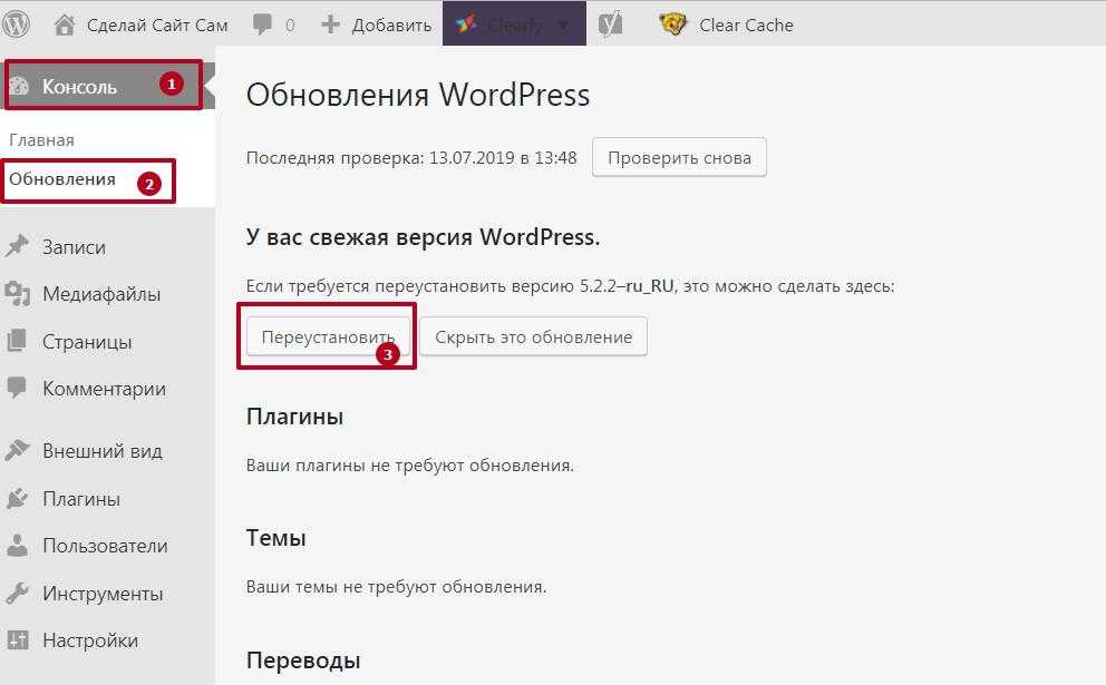 Если у вас последняя версия wordpress — переустановите ее. Работаете на старой — обновитесь до последней. Все это делается в консоли wordpress.