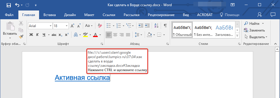 В созданном вами документе появится гиперссылка на место в другом документе либо же на веб-странице. Подсказка, которая будет отображаться по умолчанию — это путь к первому файлу, содержащему в себе закладку.