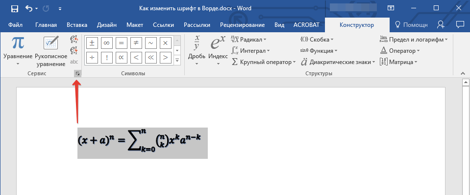 Если вы просто выделите формулу и попробуете изменить ее шрифт точно так же, как вы это делаете с любым другим текстом, ничего не получится. В данном случае действовать необходимо немного иначе.