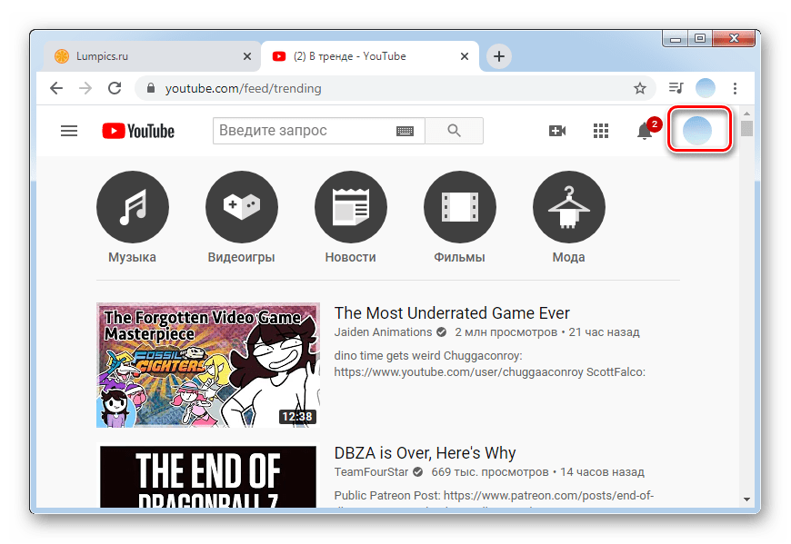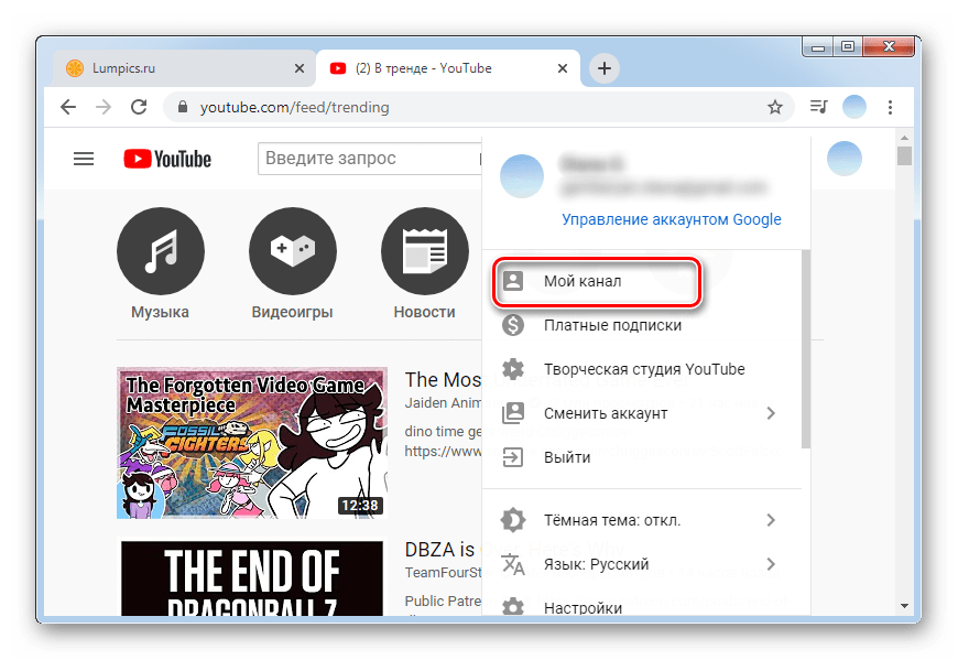 - Откройте свой аккаунт на Ютубе;