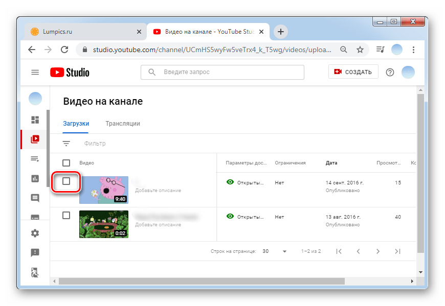 По фильтрам можно отсортировать все трансляции таким образом, как вам удобно. Рядом с каждым стримом указана дата его проведения, количество просмотров, комментарии и процент лайков. Отмечаем галочкой именно то видео, которое следует удалить.