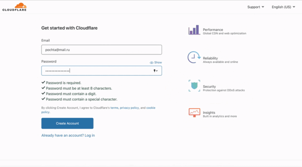 - Нажать на кнопку «Create Account».