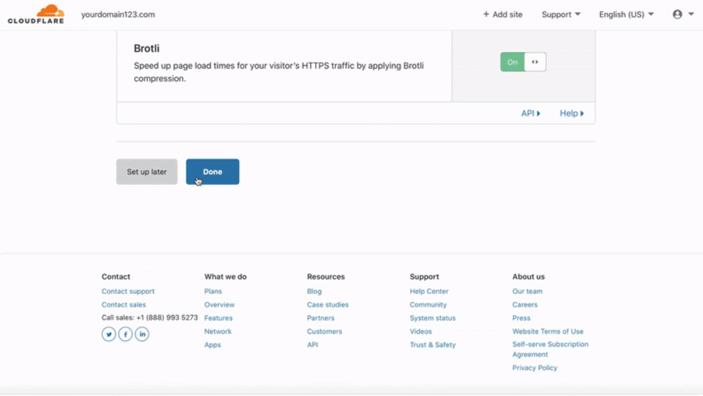 Проверьте настройки и нажмите кнопку «Done». Домен добавлен на аккаунт.