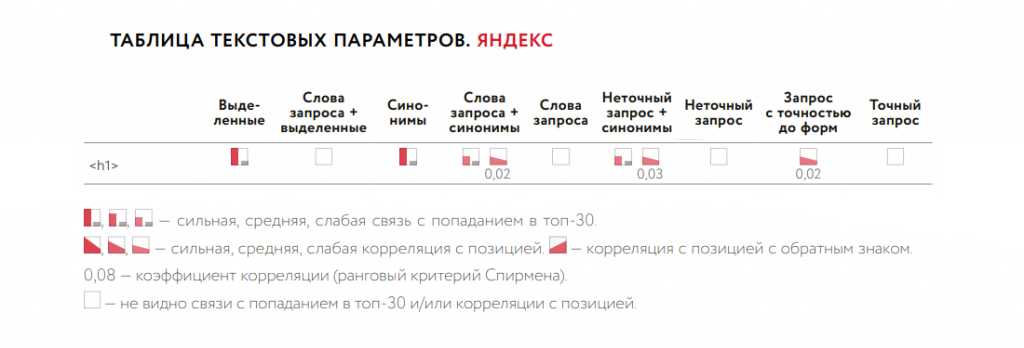 В исследовании факторов ранжирования 2019 сотрудники Лаборатории поисковой аналитики компании «Ашманов и партнеры» не обнаружили корреляции позиций в Яндексе с вхождением в заголовок H1.