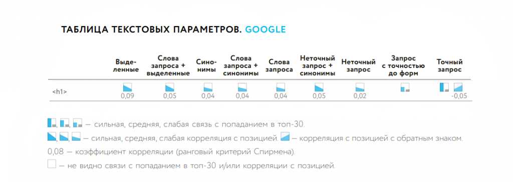 Есть корреляция точного запроса с попаданием в топ-30 Google: