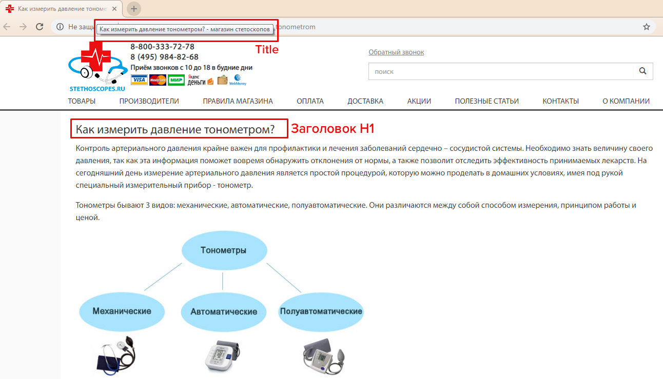Метатеги Title и H1 по своей сути являются заголовками, но имеют разное предназначение. Под заголовком Title подразумевается название всей страницы. H1 обобщает только ее текстовую часть. Оба заголовка положительно влияют на конверсию конкретной страницы.