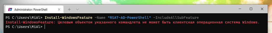 Install-WindowsFeature: Целевым объектом указанного командлета не может быть клиентская операционная система Windows.