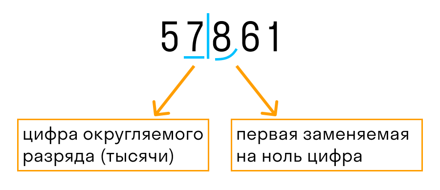 Давайте рассмотрим, как округлить число 57 861 до тысяч. Выполним первые два пункта из правил округления.