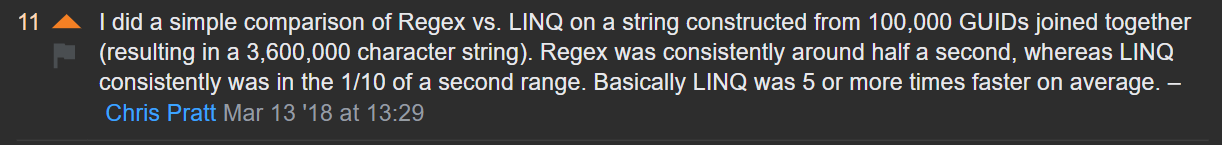 RegEx медленный, неэффективный и часто трудный для чтения и синтаксического анализа. Поэтому по возможности его следует избегать.