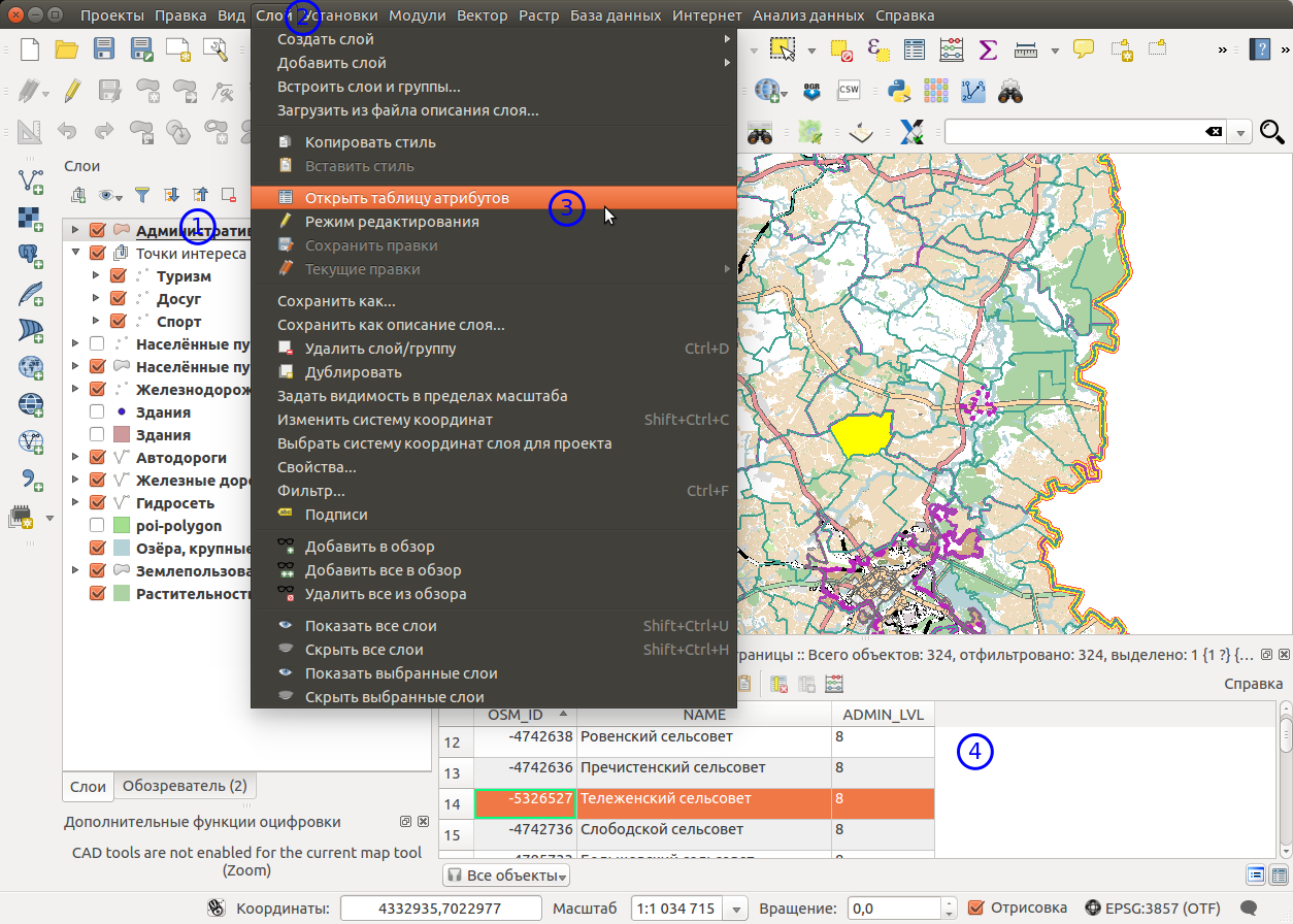 Пространственное связывание осуществляется присоединение атрибутов по месторасположению.
