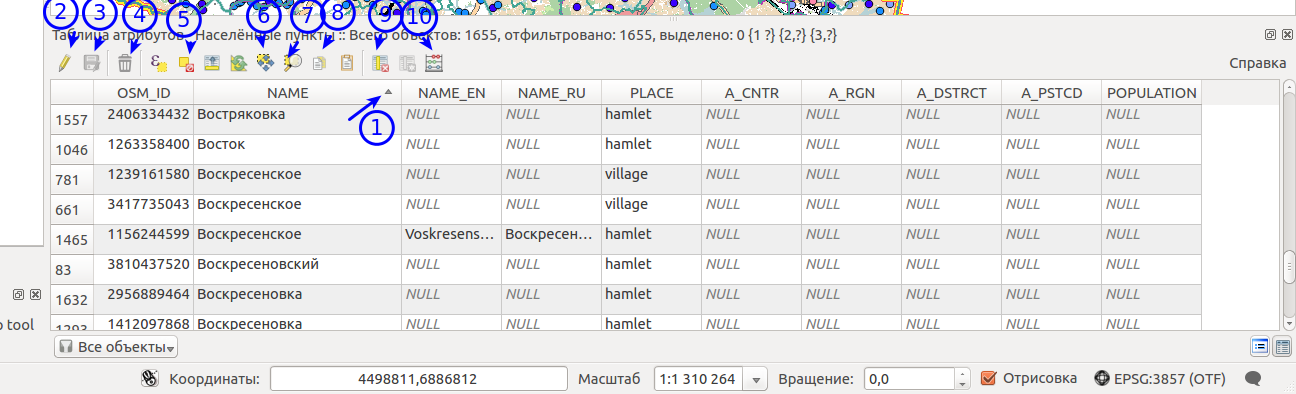 Операции, запускаемые через меню «Вектор», будут выполняться только для тех записей,