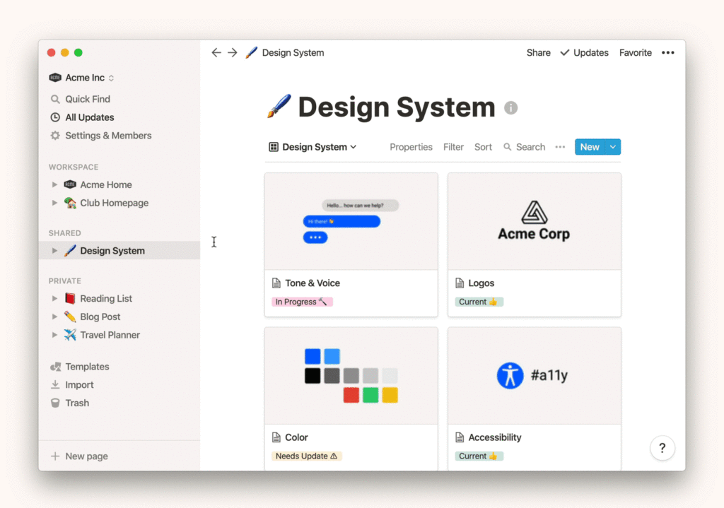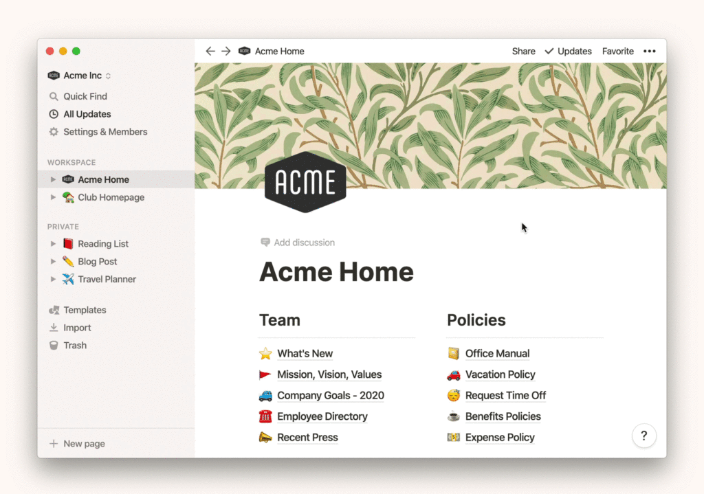 - Создайте страницу в разделе () на боковой панели. Каждый в вашем рабочем пространстве автоматически получит к нему доступ.