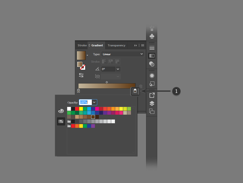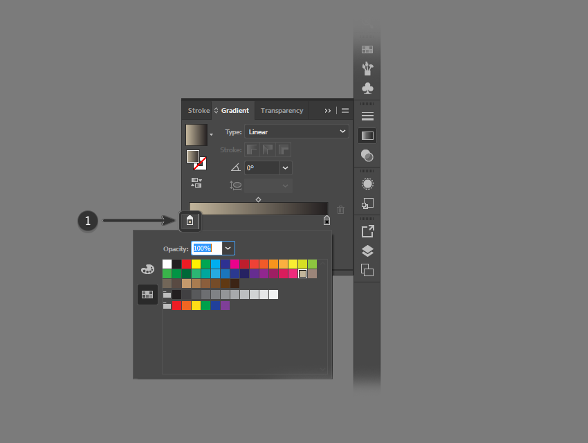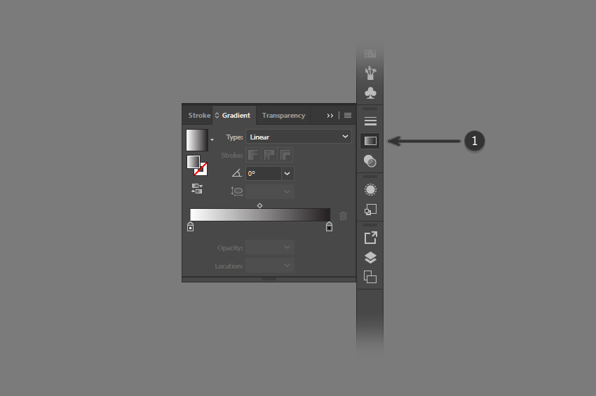 Чтобы создать градиент, вы должны сначала получить доступ к панели «Градиент» . Она может быть расположена на панели инструментов справа. Вы также можете получить доступ к ней, перейдя в Window > Gradient.