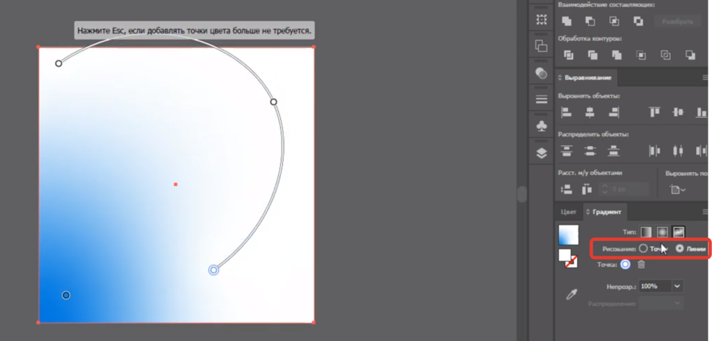 Это автоматически применит градиент к объекту. Отредактировав вид градиента на панели «Градиент», вы также измените градиент выбранного объекта.