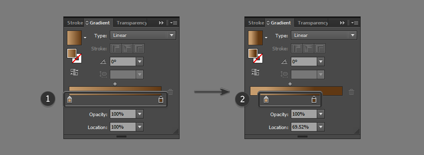 После того, как цвета были определены, вы можете настроить местоположение начальной и/или конечной точки. Это изменит внешний вид и плавность градиента. Для этого нажмите и перетащите ползунок влево или вправо, пока не будете довольны результатом.